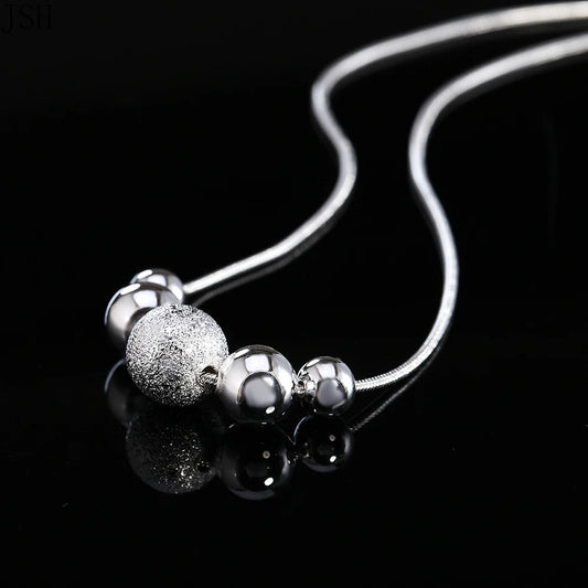 925 Sterling Silver Necklace Matte Ball Irregular Beads